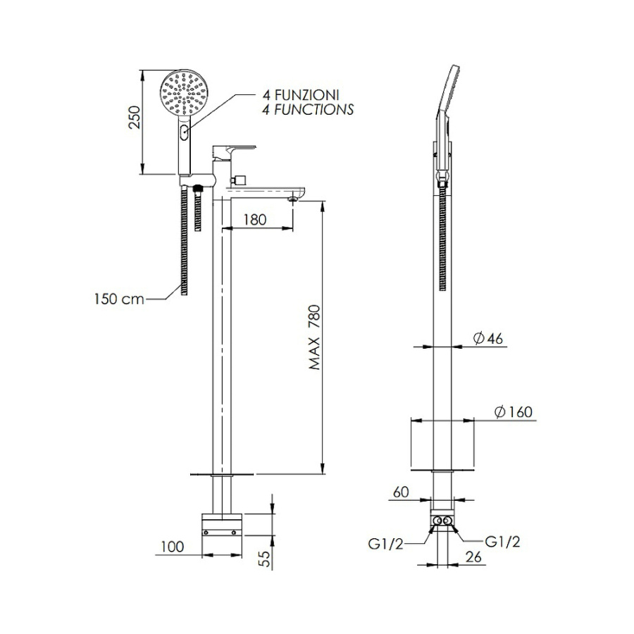 Смеситель для ванны с душем Remer Energy EY08 напольный, хром
